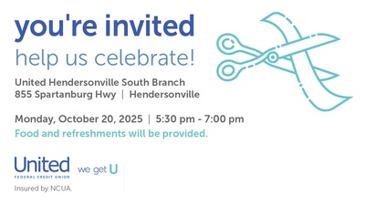 After Hurricane Helene flooded the branch near The Fresh Market & PetSmart, UFCU was able to secure a new building beside the Hendersonville Co-Op. After working the past 6 months in renovations, they're proud to invite the community to this celebration!